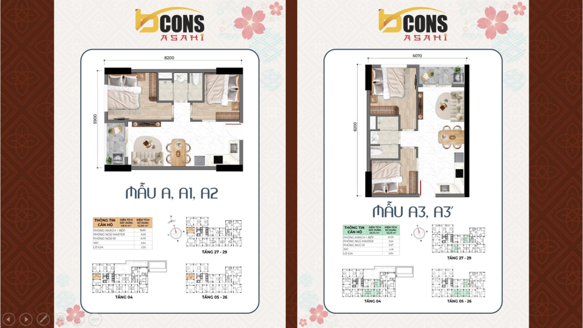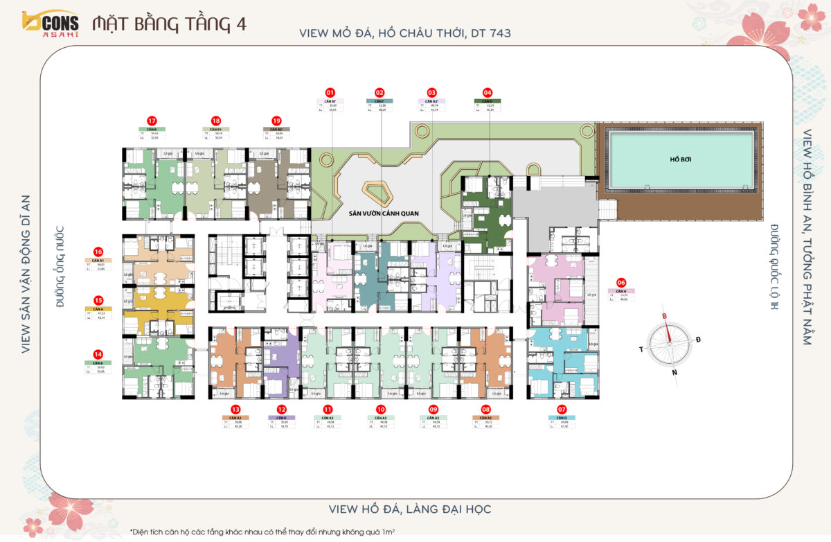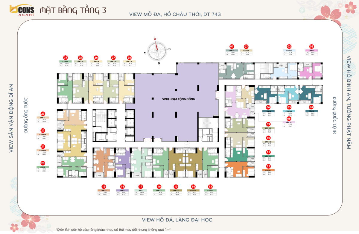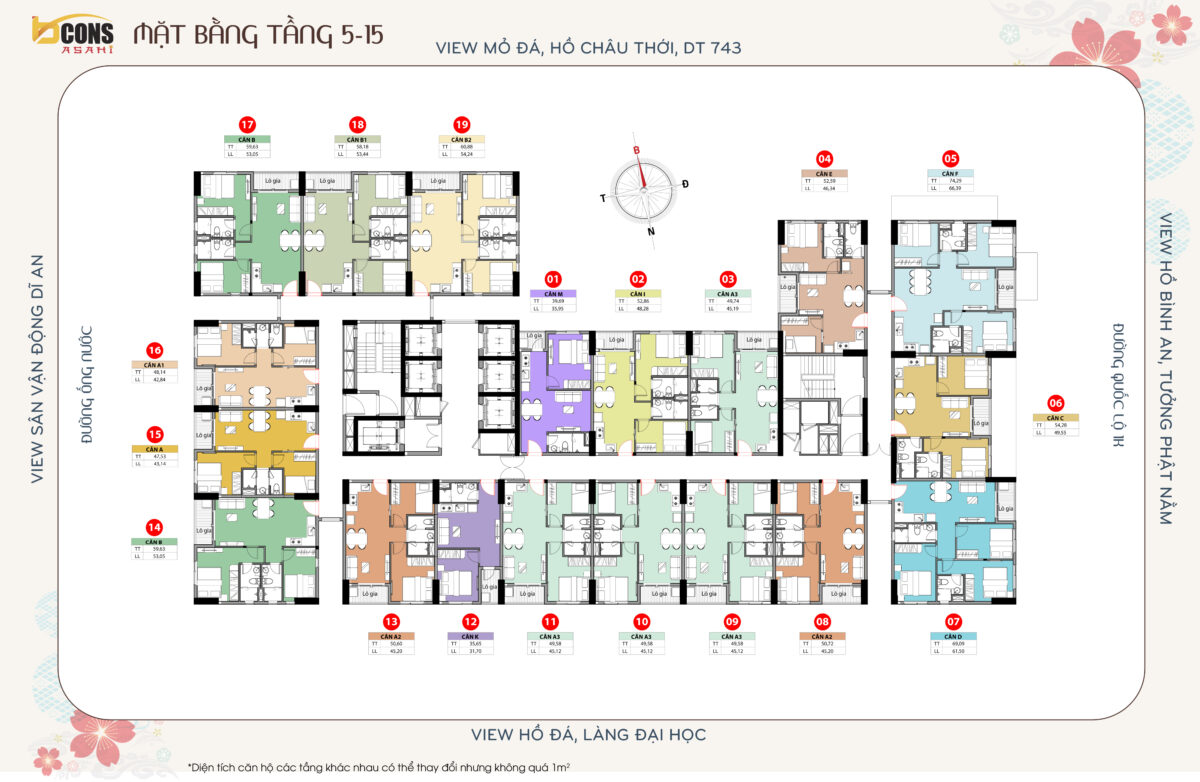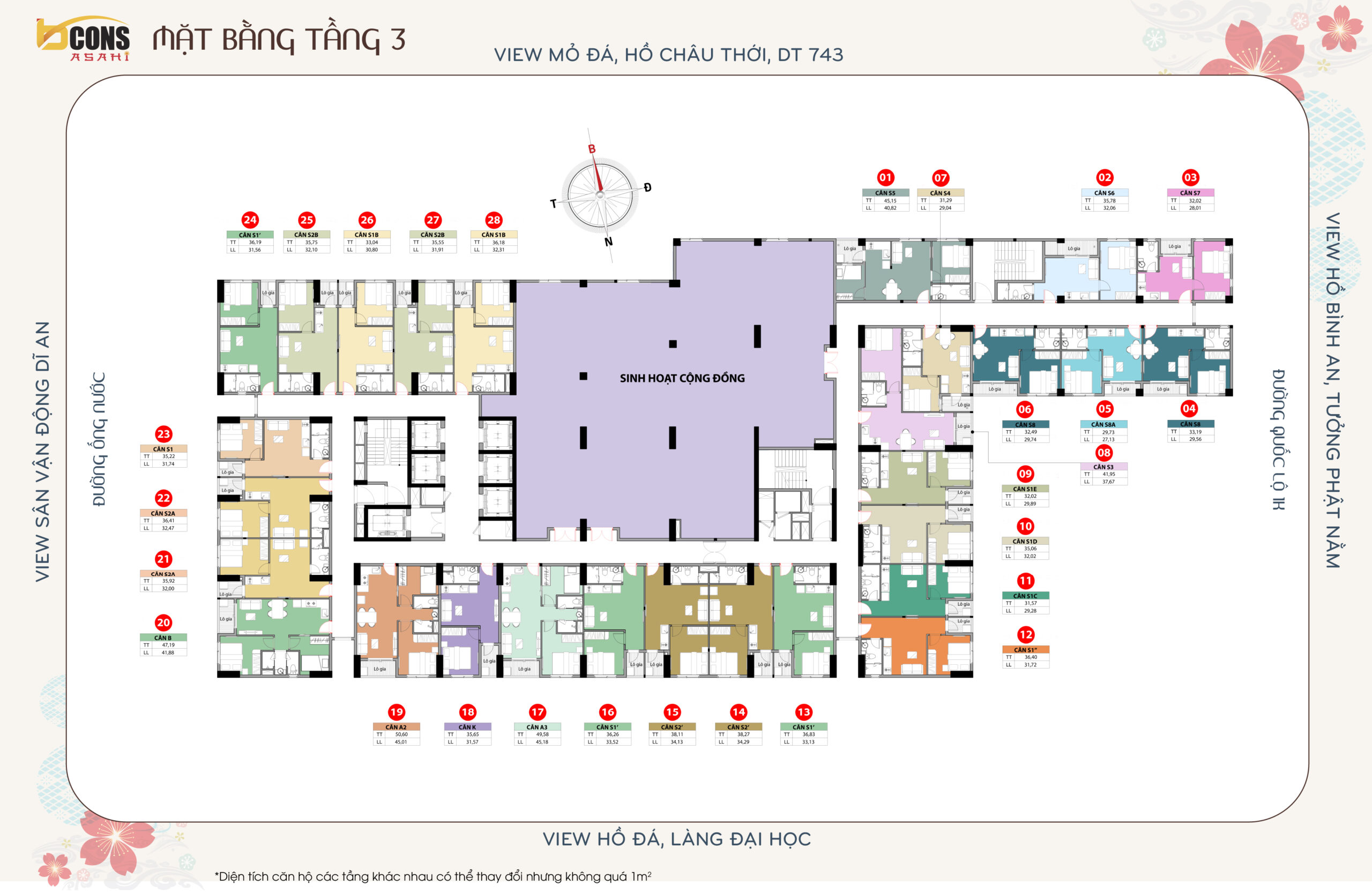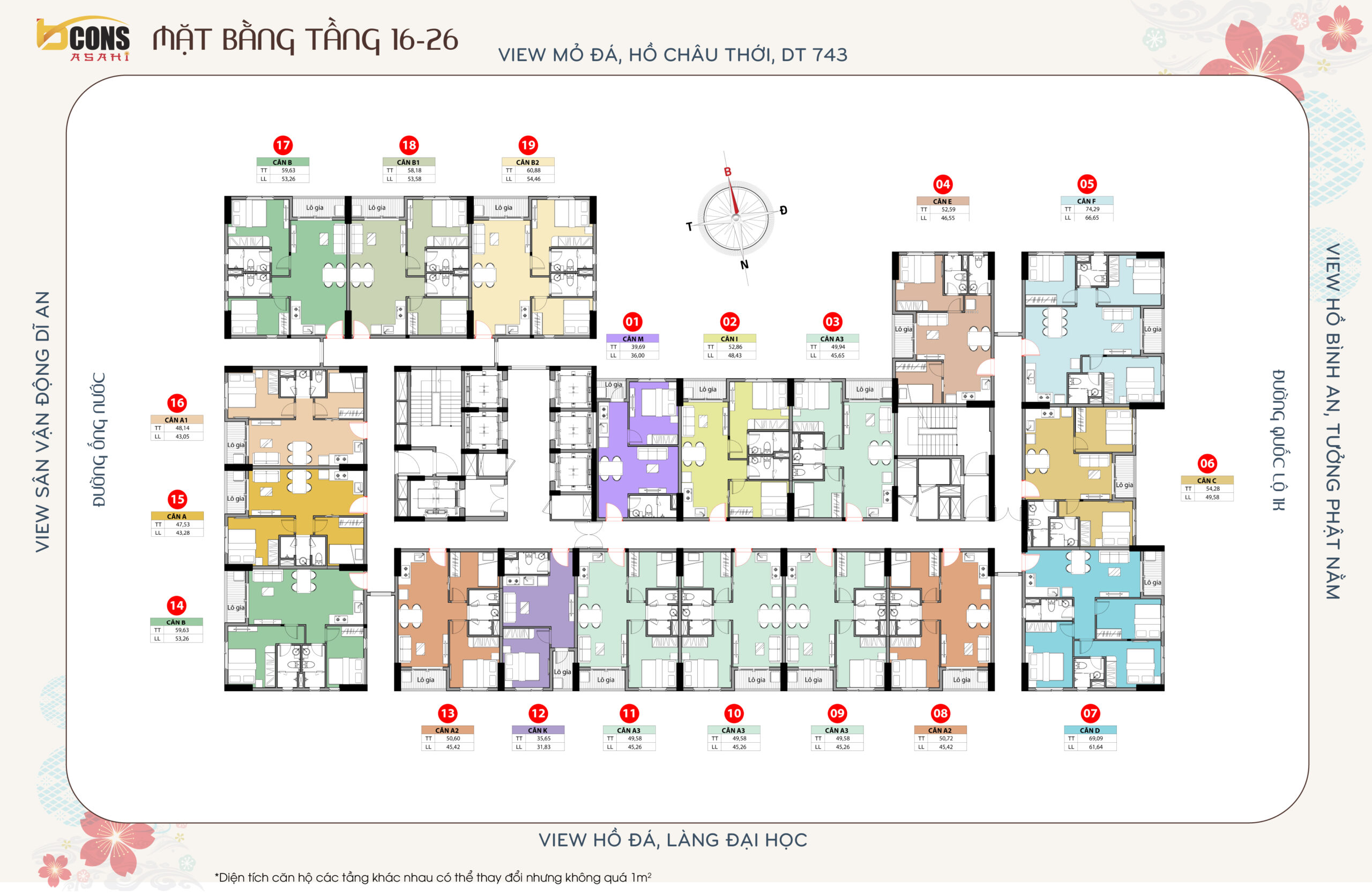 MẶT BẰNG TẦNG CĂN HỘ BCONS ASAHI