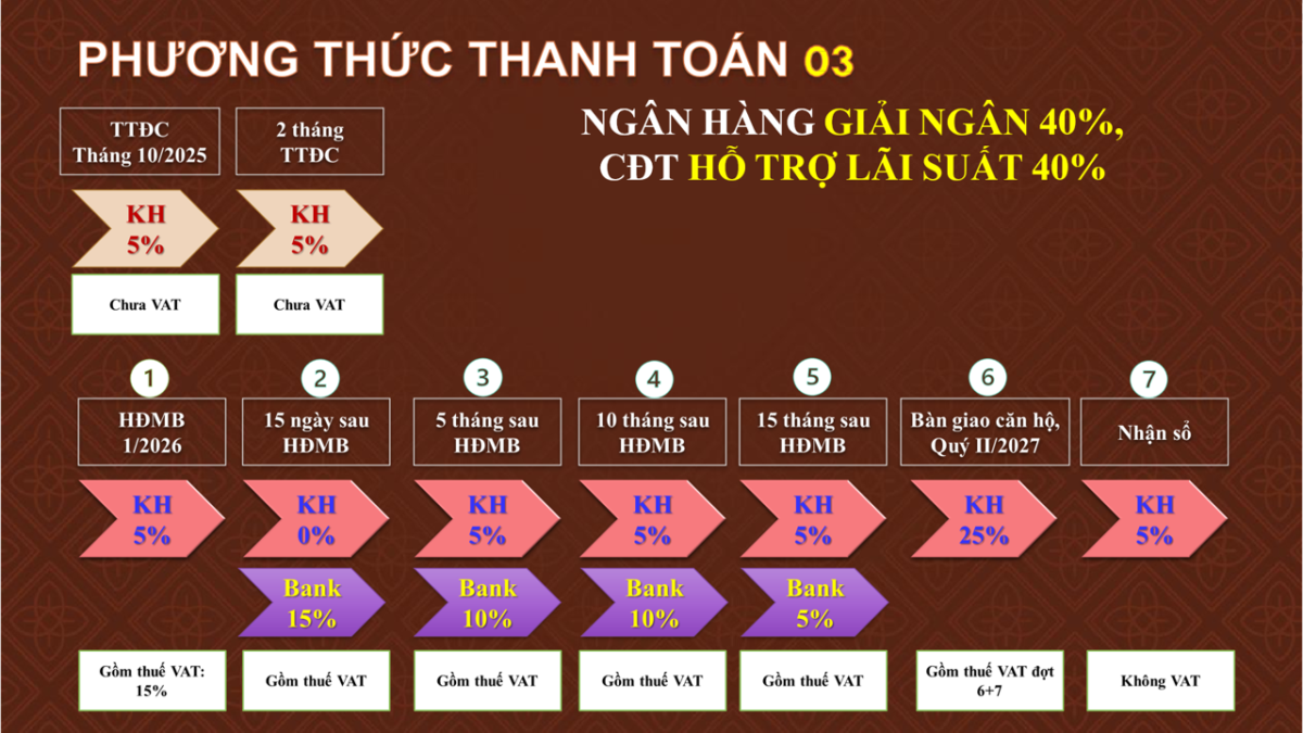 Ngoài ra, Chủ đầu tư cũng tạo điều kiện thuận lợi cho những khách hàng có nguồn tài chính khách nhau