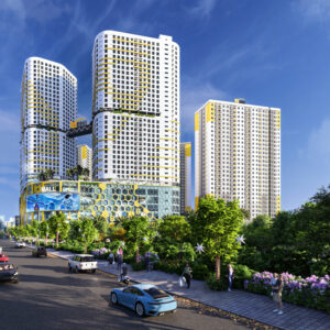 - Quy mô dự án: 3900 căn hộ từ 1 –> 3 phòng ngủ, diện tích 33 -> 65m2